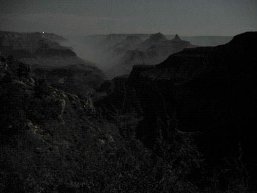 distance down the trail - you can see the light of the North Rim Lodge