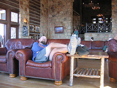 top. We lie back on some benches next to a stream, remove our shoes
